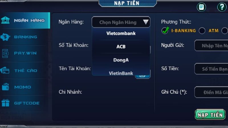Khi sử dụng E-Banking, bạn sẽ cần đăng nhập vào tài khoản cá nhân trên B52 và lựa chọn mục nạp tiền. Sau đó, hệ thống sẽ tự động chuyển đến giao diện giao dịch, nơi bạn có thể chọn phương thức thanh toán E-Banking và tiếp tục nhập số tiền muốn nạp.